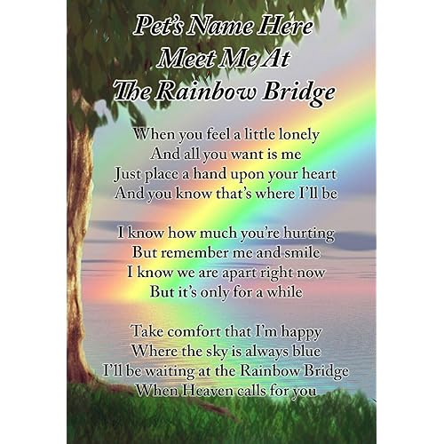 There is a bridge connecting heaven and earth. Order this very special personalized rainbow bridge poem. There is plenty of food, water and sunshine, and our friends are. Download a free 5x7 rainbow bridge graphic. Free shipping on orders over $25 shipped by amazon.
